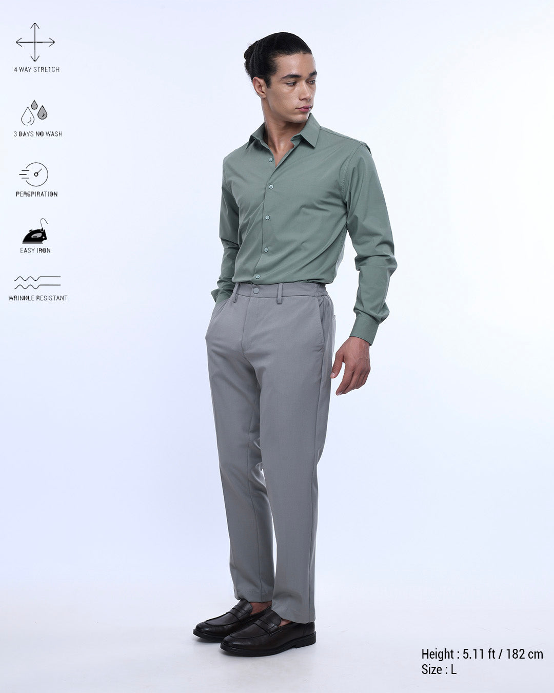 Tailored-fit shirt in a comfortable polyester and viscose blend with a high stretch wrinkle-resistant fabric featuring long sleeves, buttoned cuffs, and a spread collar.
