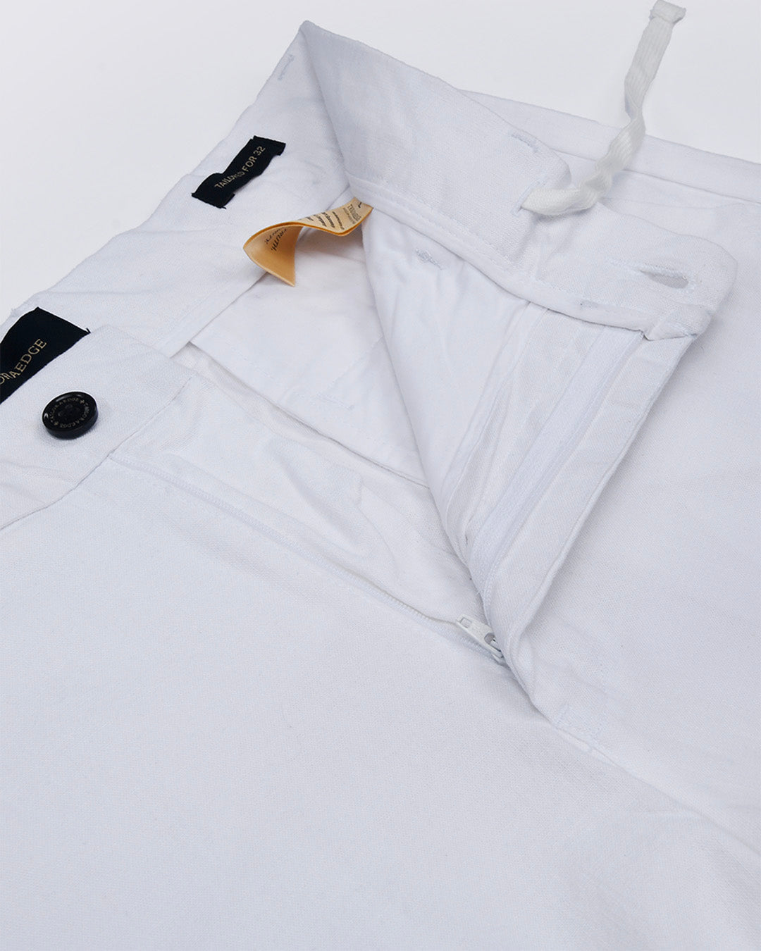 Tailored fit linen feel chinos in a comfortable cotton fabric with a classic hidden drawstring adjustable waistband featuring front pockets, jetted back pockets and zip fly for better comfort.