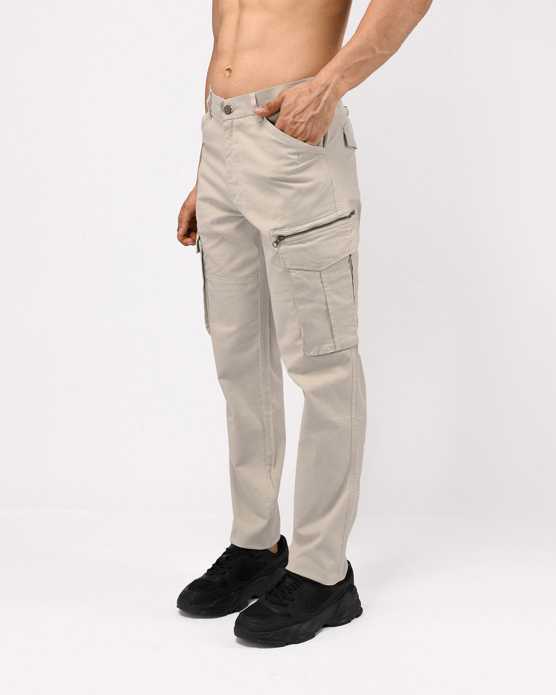 Tailored Fit Cargos In A Comfortable Cotton Stretch Fabric with A Classic Waistband. Featuring Front Pockets , Side Cargo Pockets, Utility Zip Pocket, jetted Back Pockets And Zip Fly For Better Comfort.