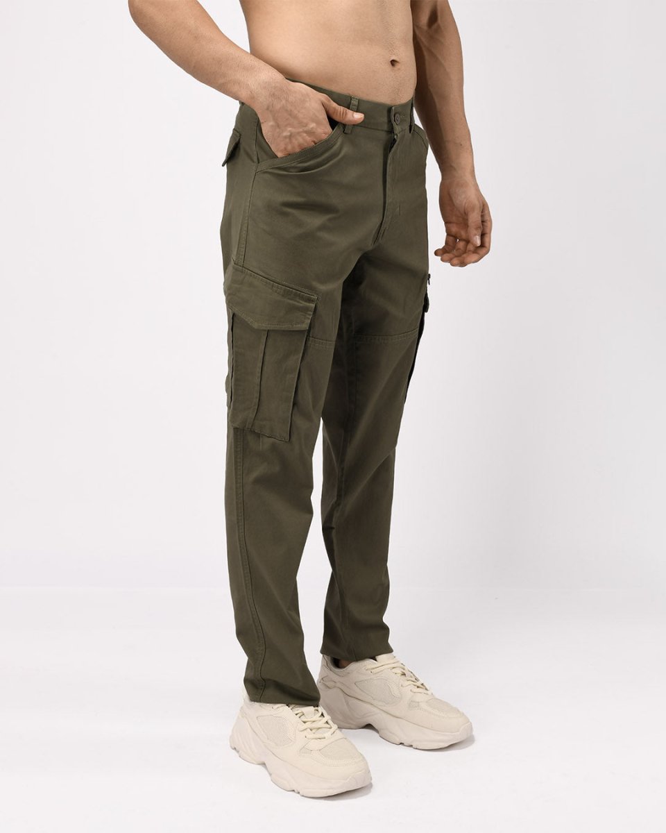 Tailored Fit Cargos in a Comfortable Cotton Stretch Fabric with a Classic Waistband. Featuring Front Pockets, Side Cargo Pockets, Utility Zip Pocket, jetted Back Pockets And Zip Fly For Better Comfort.
